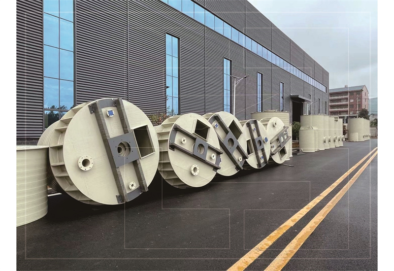 近幾年在得益于新能源行業的飛速發展,公司已有六條螺旋基礎生產線,產品主要輻射中部地區、西部地區,年產能可達3000多臺PPH、HDPE罐,200多套尾氣處理塔,出貨量處于同行業中比較強的地位,公司儲罐采用一次性成型工藝制作,單體模具尺寸可達4200*9500mm,體積達130m³,配置下人孔自動焊接機,設備使用安全,無滲漏風險,主要應用液鎳,液鈷,混合鹽液、液堿、氨水、硫酸等介質的存放。
